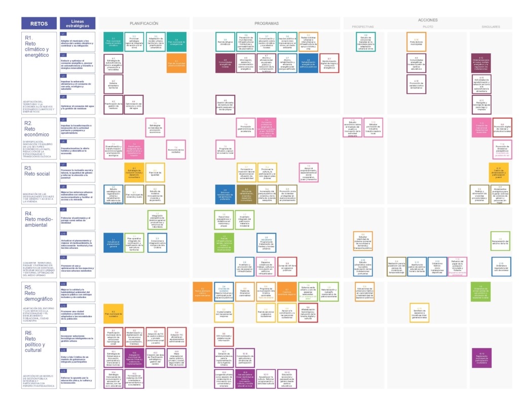 Las 100 acciones del Plan de Acción Isla Cristina 2030 organizados en RETOS y LÍNEAS DE ACTUACIÓN