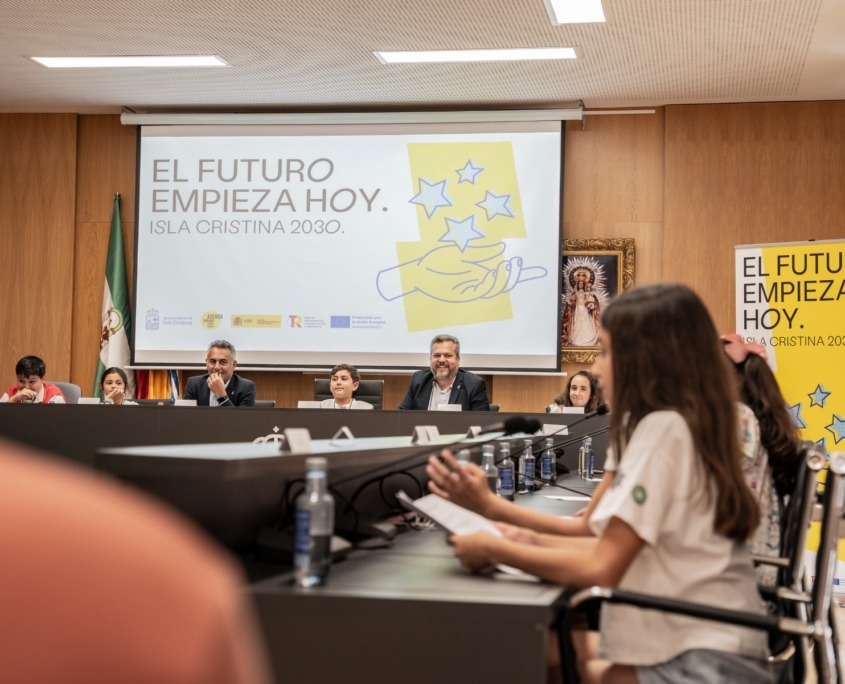 Antes de entrar en el debate plenario, y tras las palabras de bienvenida que les dieron tanto el alcalde como el delegado de Infancia, el primer edil presentó a los niños y niñas el proyecto piloto para el desarrollo del Plan de Acción Local “Agenda Urbana Isla Cristina 2030”, ya que el colectivo infantil conforma una parte importante en las mesas de participación ciudadana que están trabajando los distintos retos de este Plan.