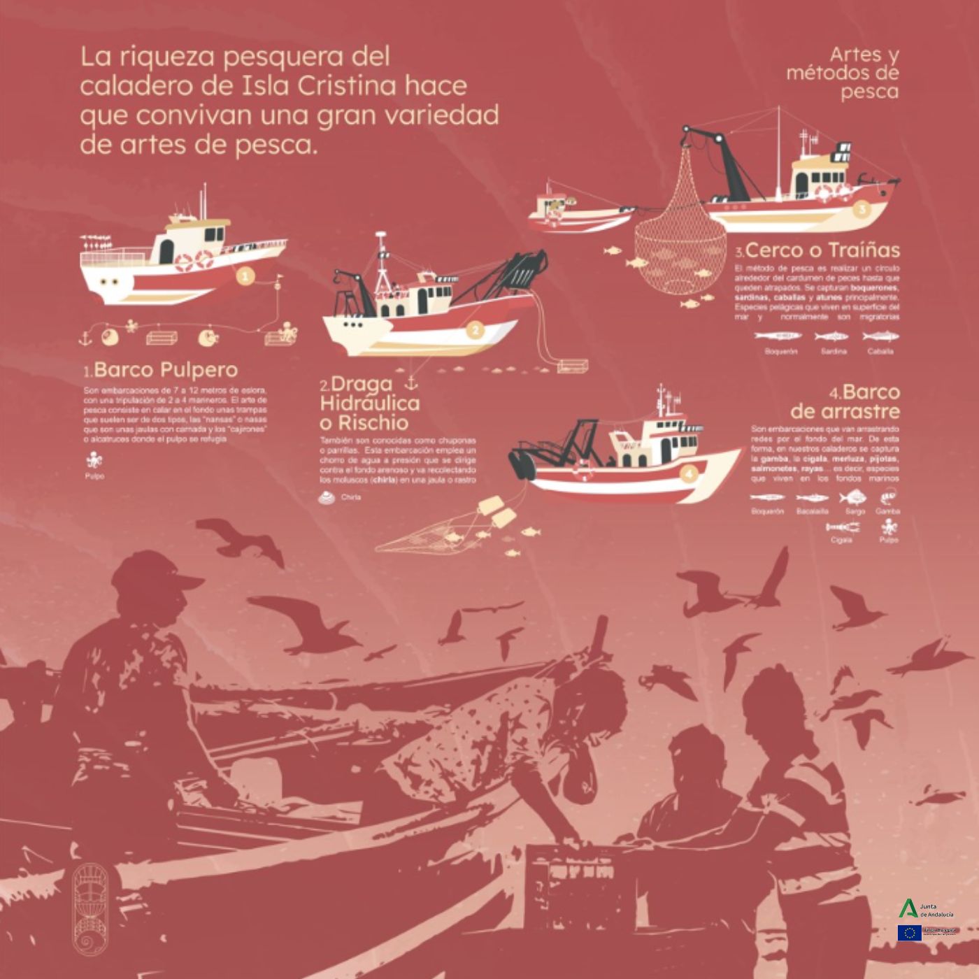 Este proyecto ha sido financiado en el marco de la Estrategia de Desarrollo Local Participativo de los GALP de Andalucía, corresponde al periodo de ejecución del Fondo Europeo Marítimo y de Pesca 2014-2020. Subvencionadose por los Fondos Europeos en un 85% y por la Junta de Andalucía a través de la Consejería de Agricultura, Pesca y Desarrollo Rural en un 15%.