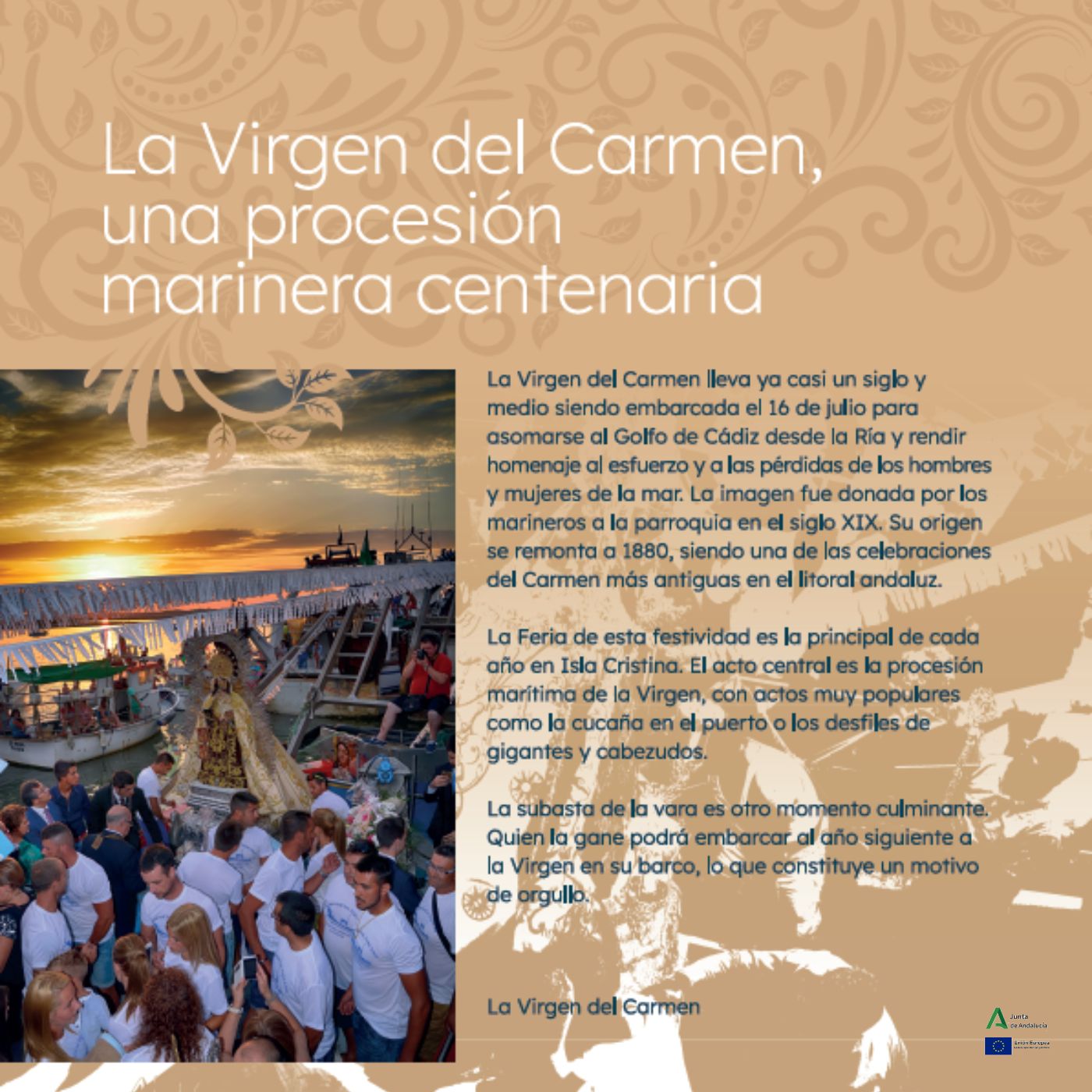 - El espacio dedicado a las expresiones culturales, como el carnaval de raigambre náutica, la devoción mariana o la gastronomía marinera.