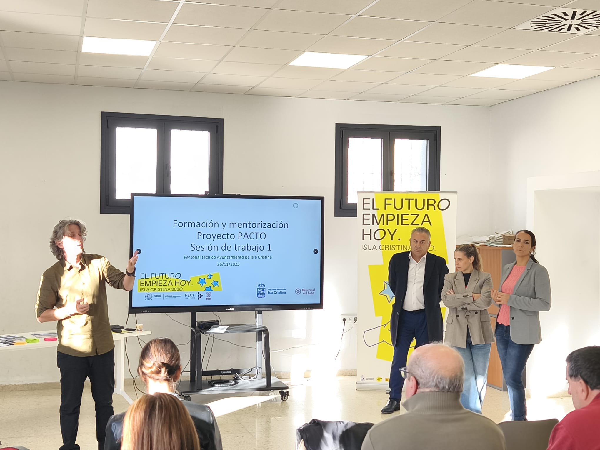 Esta jornada inicial, dirigida al personal técnico municipal, forma parte del Proyecto PACTO (Proyecto de Asesoramiento Científico y Mentoría para la Toma de Decisiones en Políticas Públicas desde el Observatorio de la Agenda Urbana Isla Cristina 2030), que cuenta con el respaldo de la Universidad de Huelva (UHU) y la financiación de la Fundación Española para la Ciencia y la Tecnología (FECYT).