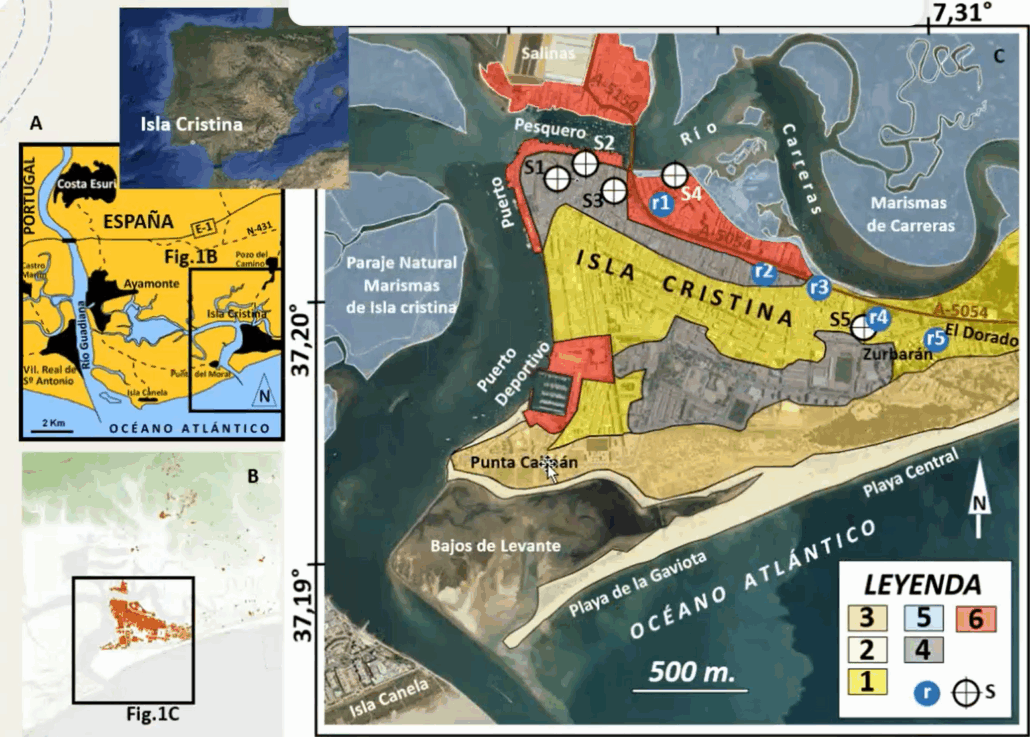 1. Definición Geofísica: Se están definiendo las características geofísicas del término municipal de Isla Cristina. Este análisis es clave para predecir posibles comportamientos del suelo ante eventos extremos y reforzar las estrategias preventivas.